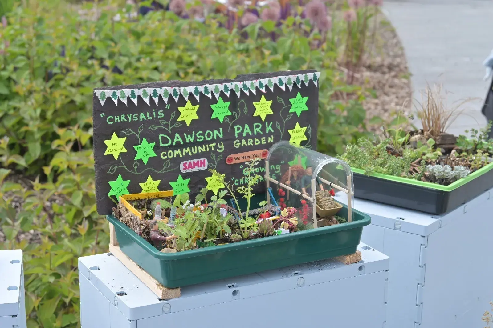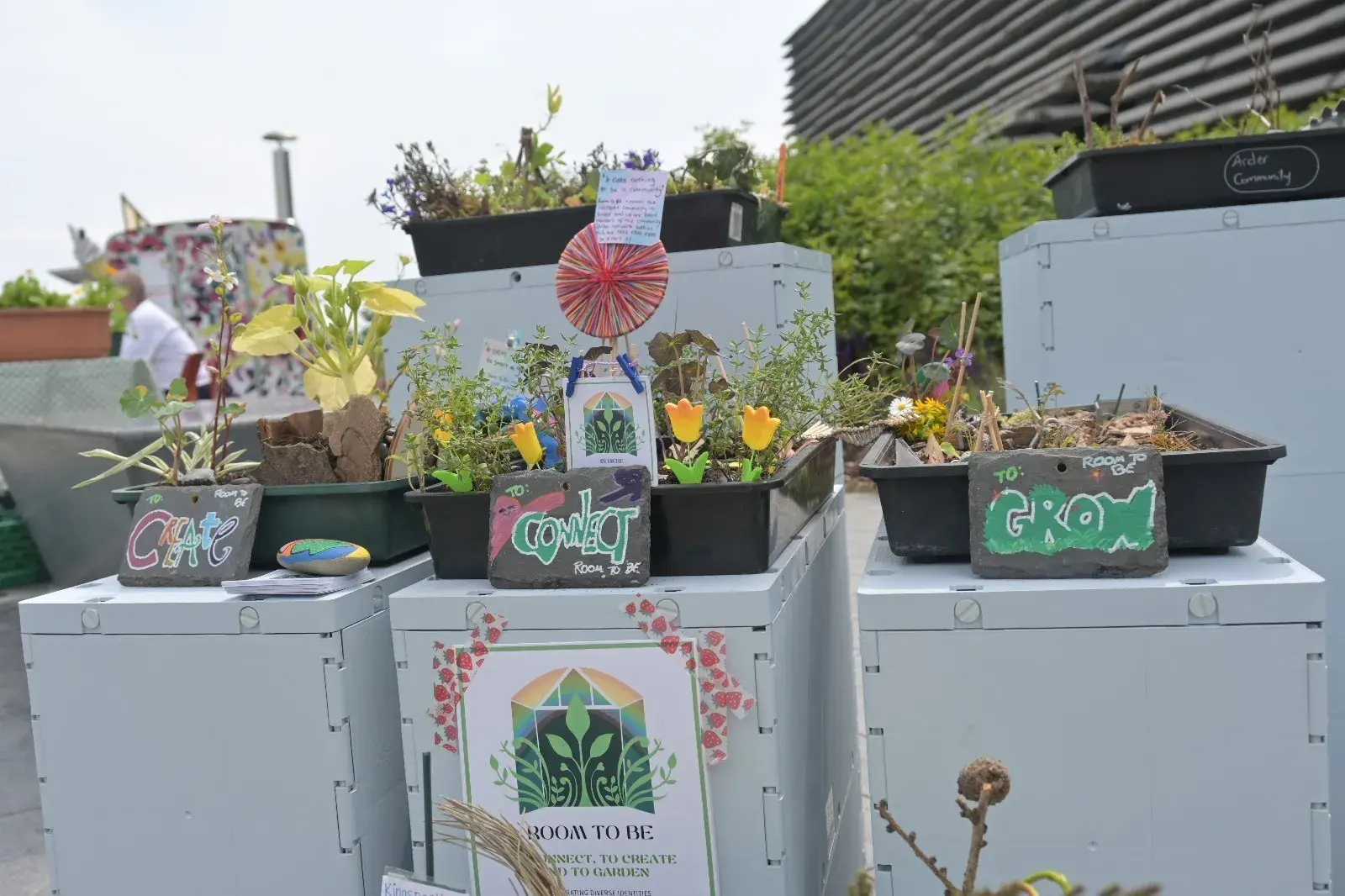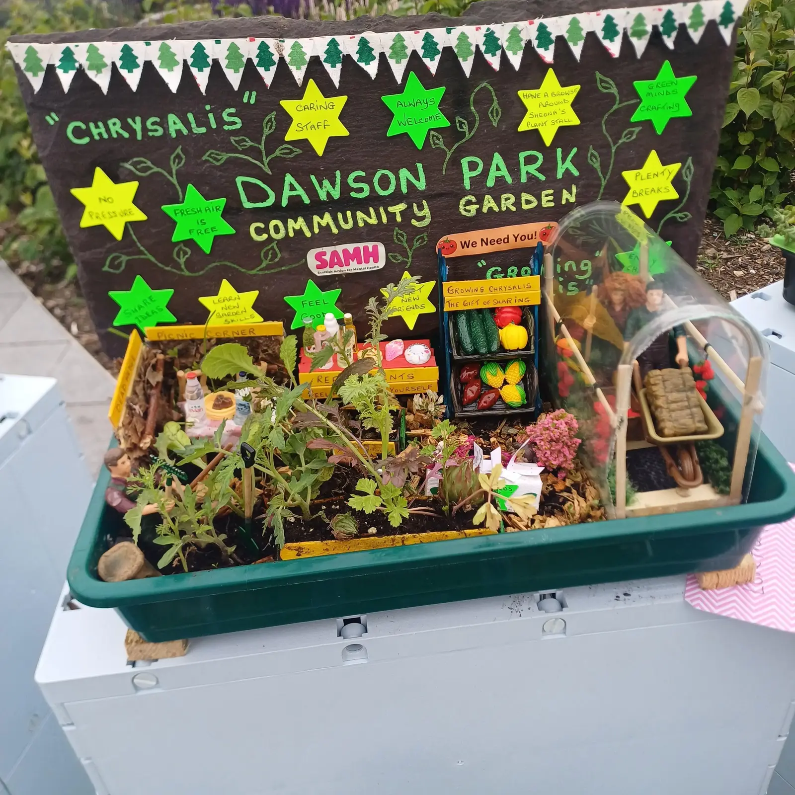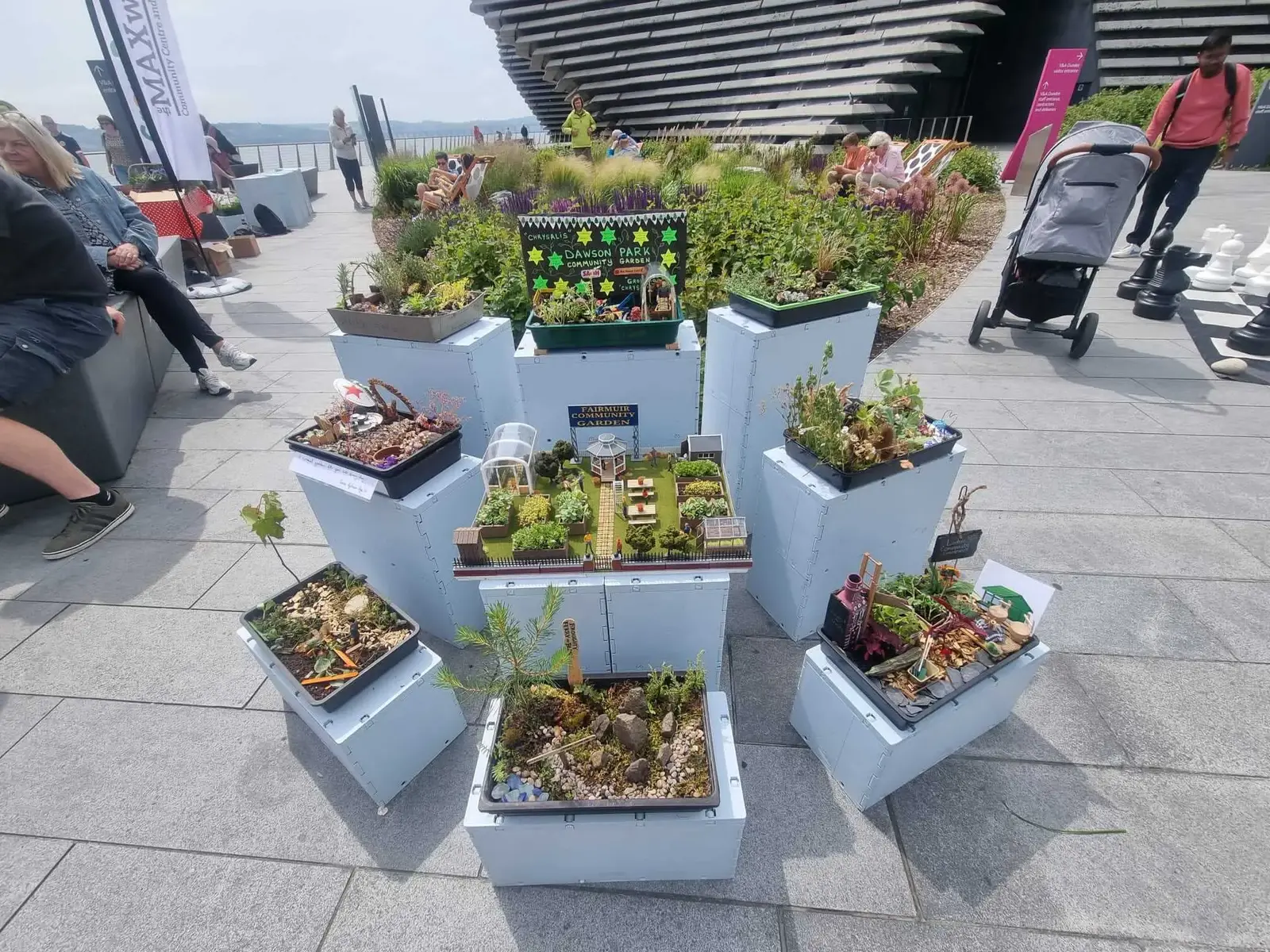 As part of the 'Garden Futures' Exhibition at the V&A Dundee we took the whole of the city-wide community growing network down to the V&A Plaza. Of course, we couldn't take the gardens so we took the next best thing. We made a collection of miniature gardens to reflect our beautiful growing spaces!! Thank you to the V&A for hosting us.