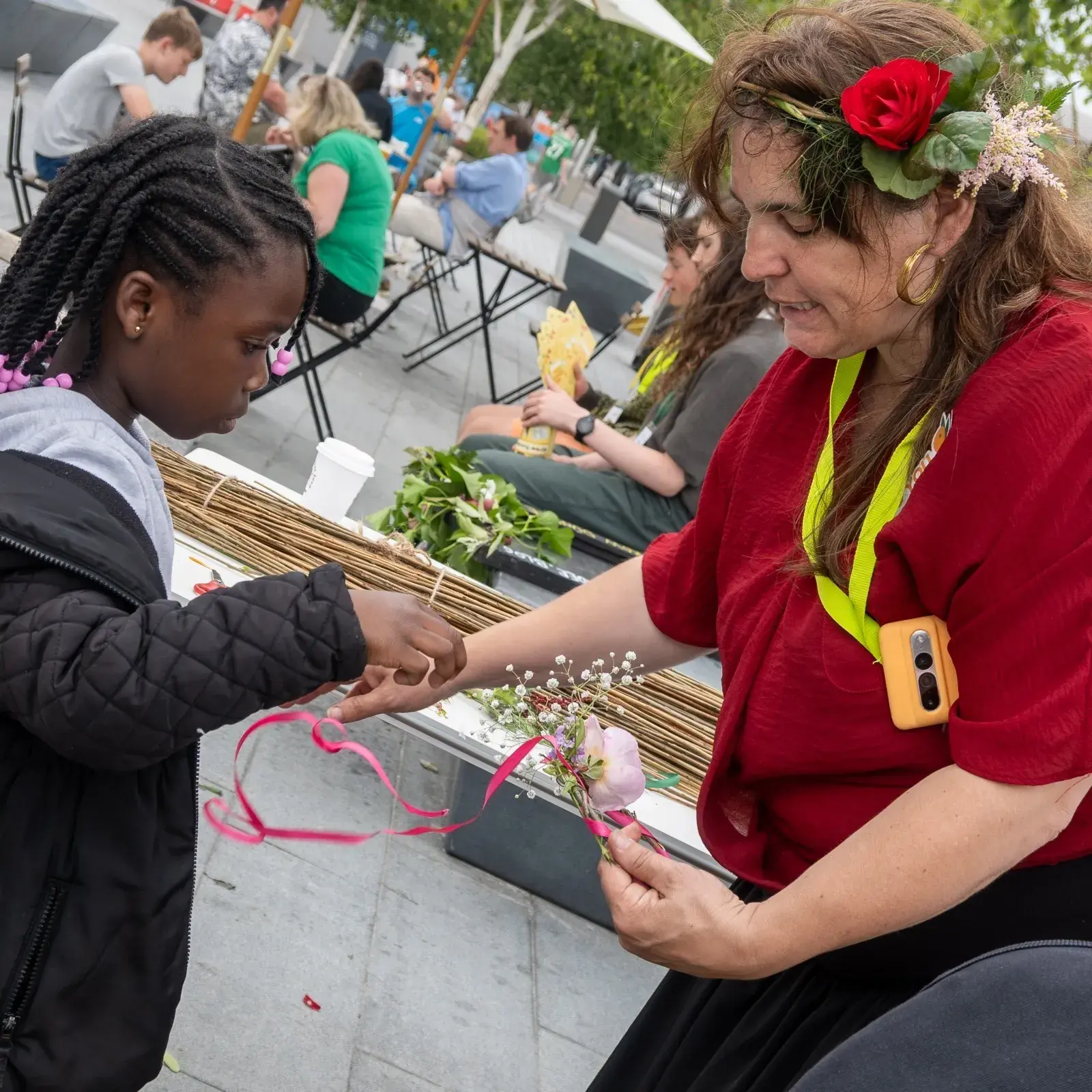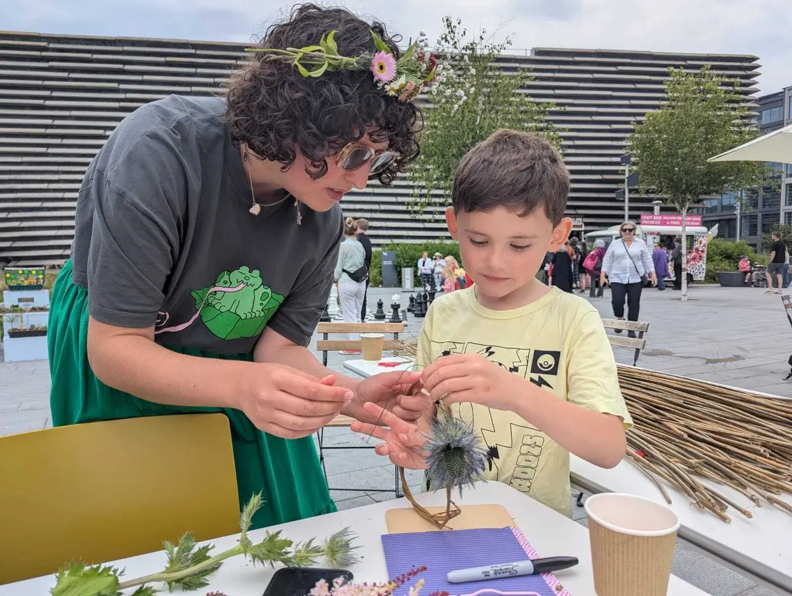 We gave away copies of our lovely new garden location map and made floral crowns. We sowed seeds and served homemade garden mocktails garnished with lots of tasty herbs from the gardens. All with the aim of spreading the word about our cool wee community growing spaces!