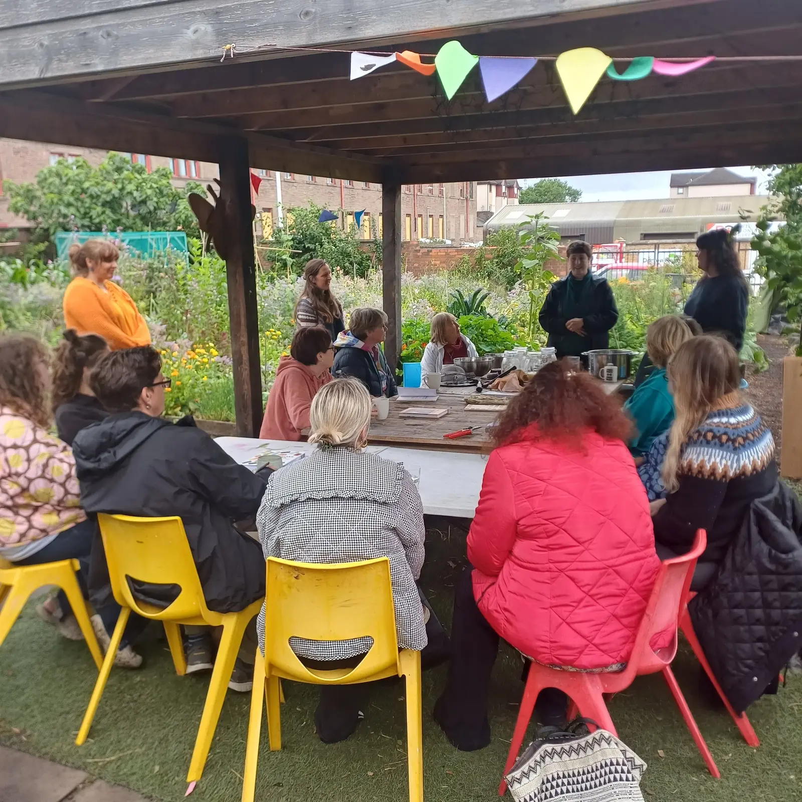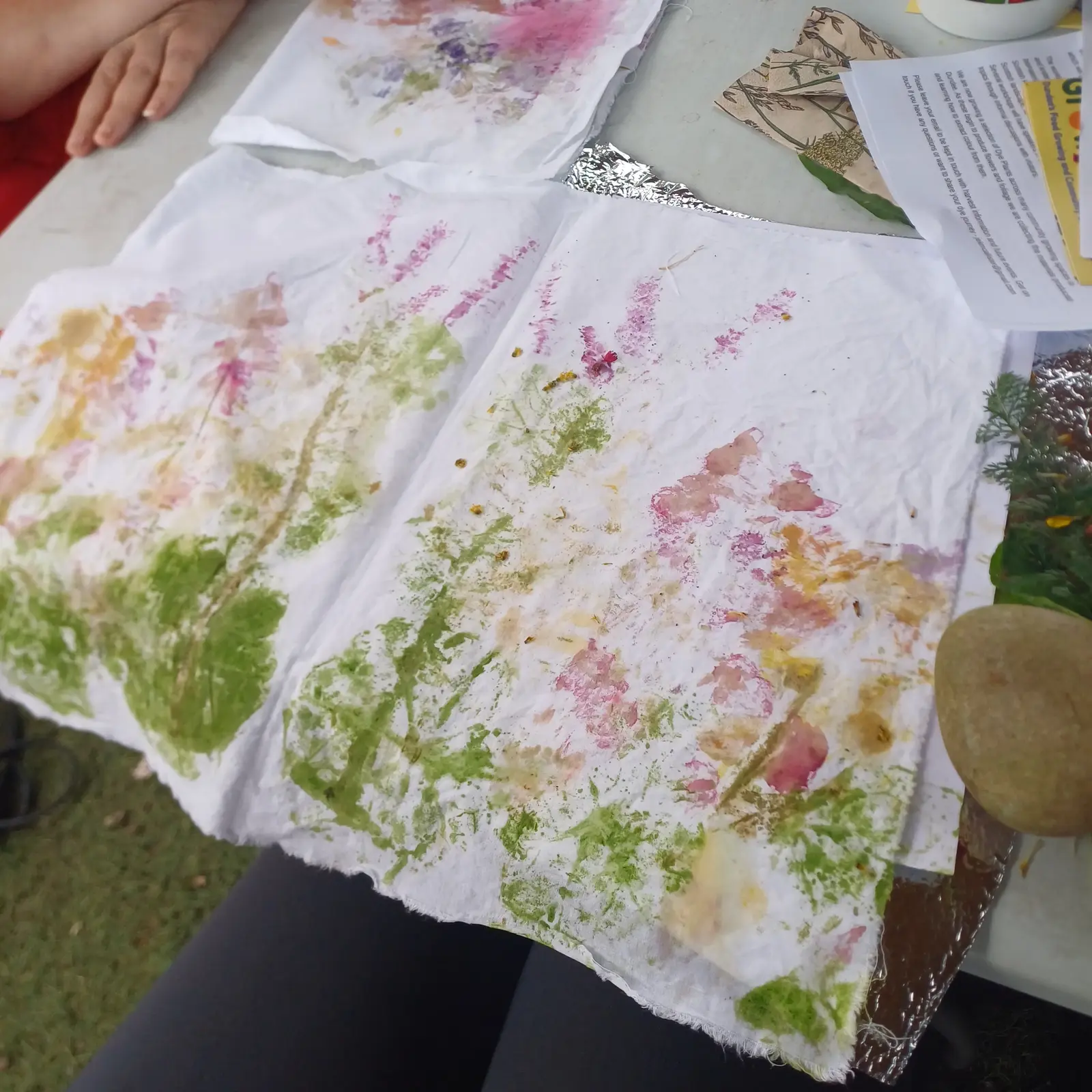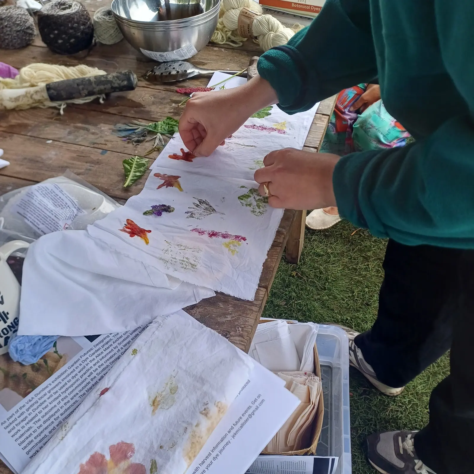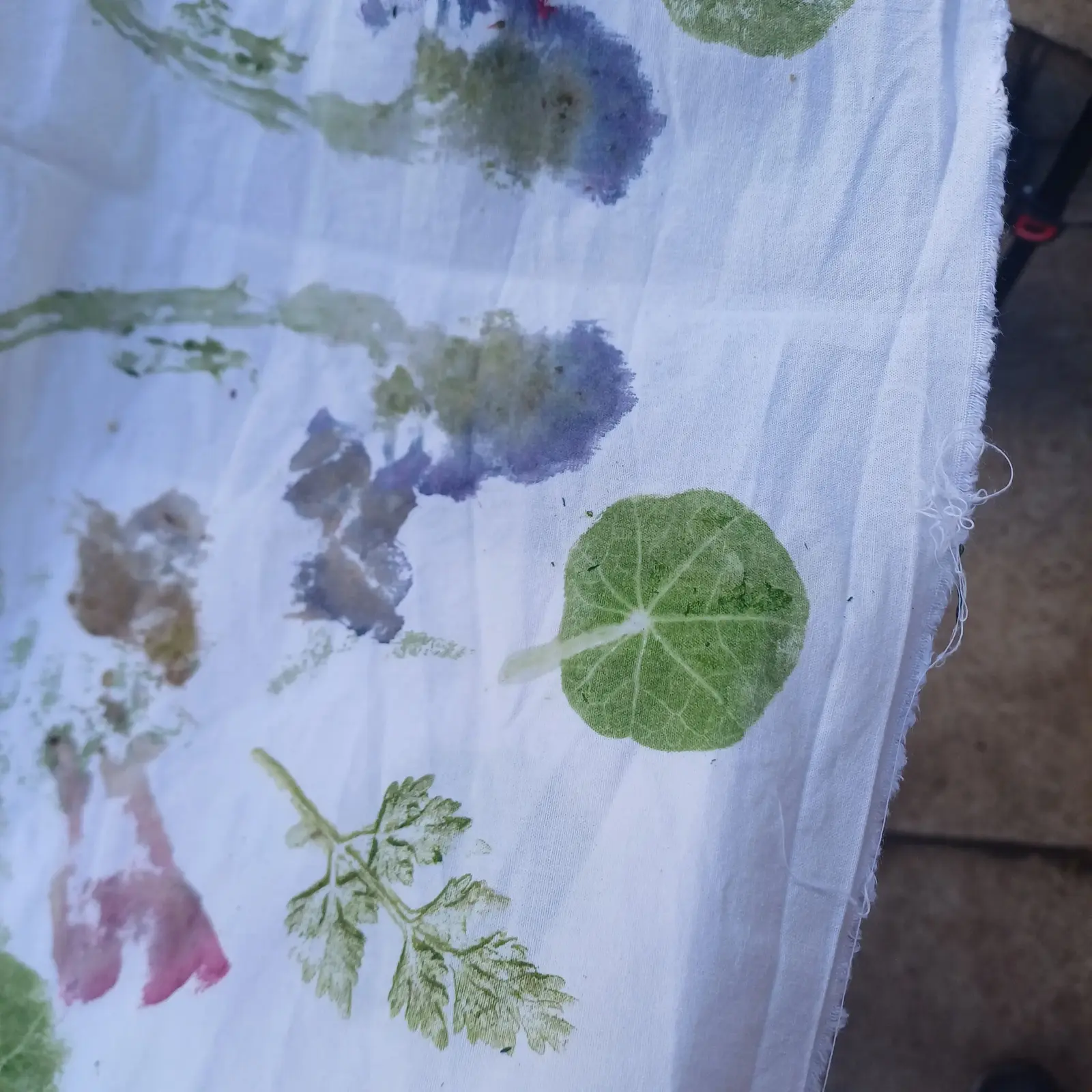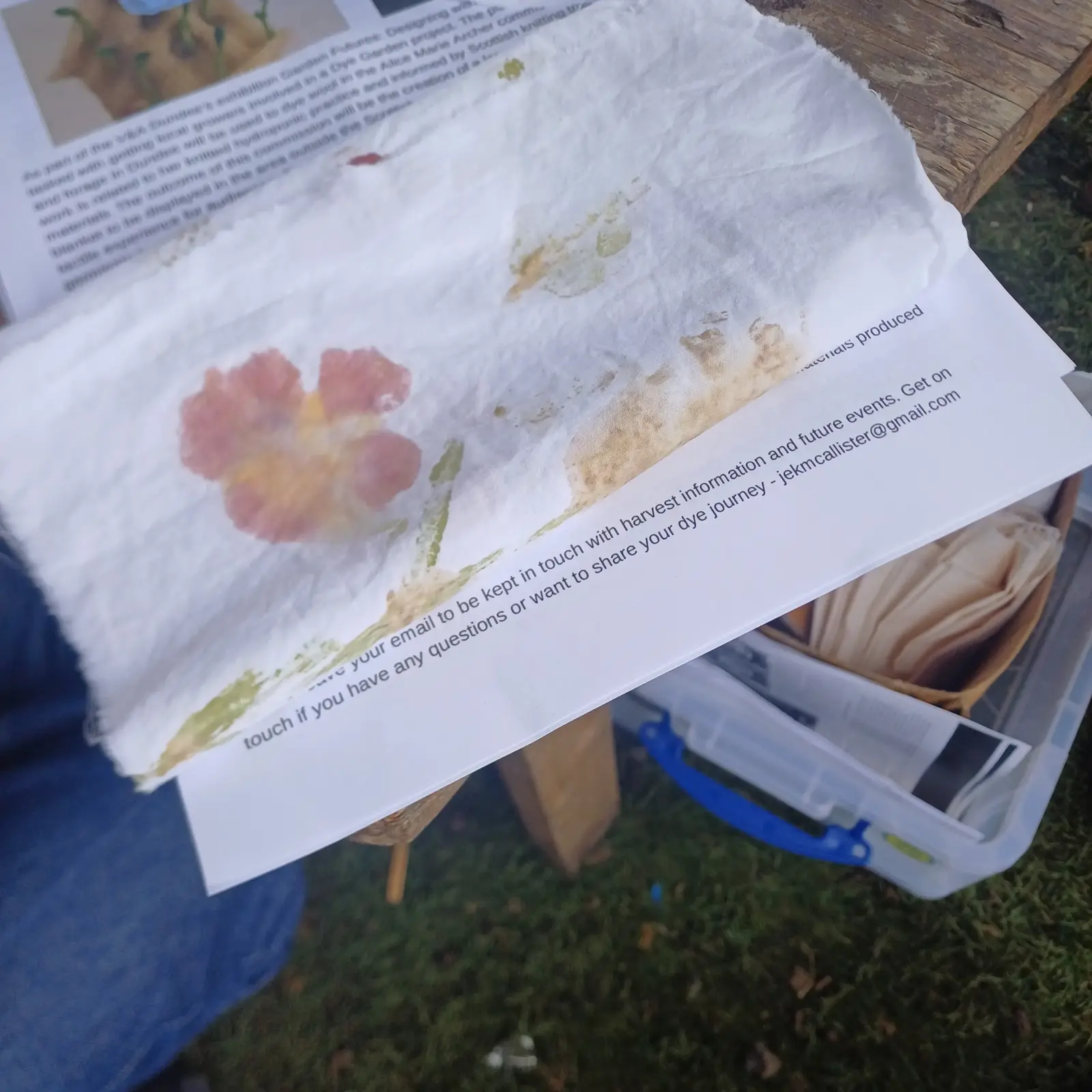 We had a wonderful evening in the garden in conjunction with the VandA Dundee learning all about Hapa Zome. This is the Japanese art of dyeing with plants where plant pigments are transferred onto fabric or paper by pounding fresh leaves and flowers with a hammer. Jek has been working with the V&A Dundee on their plant dyeing project and came along to share her knowledge. She has also been experimenting with using plants to dye wool and cotton.